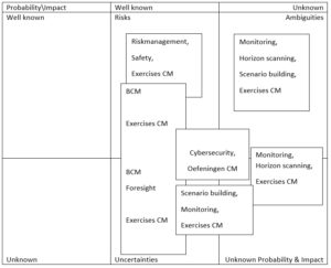 Volgens mij is dus de tijd van traditioneel BCM niet voorbij zolang er zich lineaire problemen voordoen. Daarnaast zal Adaptive BC zich verder moeten ontwikkelen tot een meer mature bezigheid, die haar eigen deel van het spectrum van disasters kan opeisen, samen met monitoring, scenario’s bouwen en toekomstscanning. Maar dan naast Traditioneel BCM. Niet in de plaats daarvan.